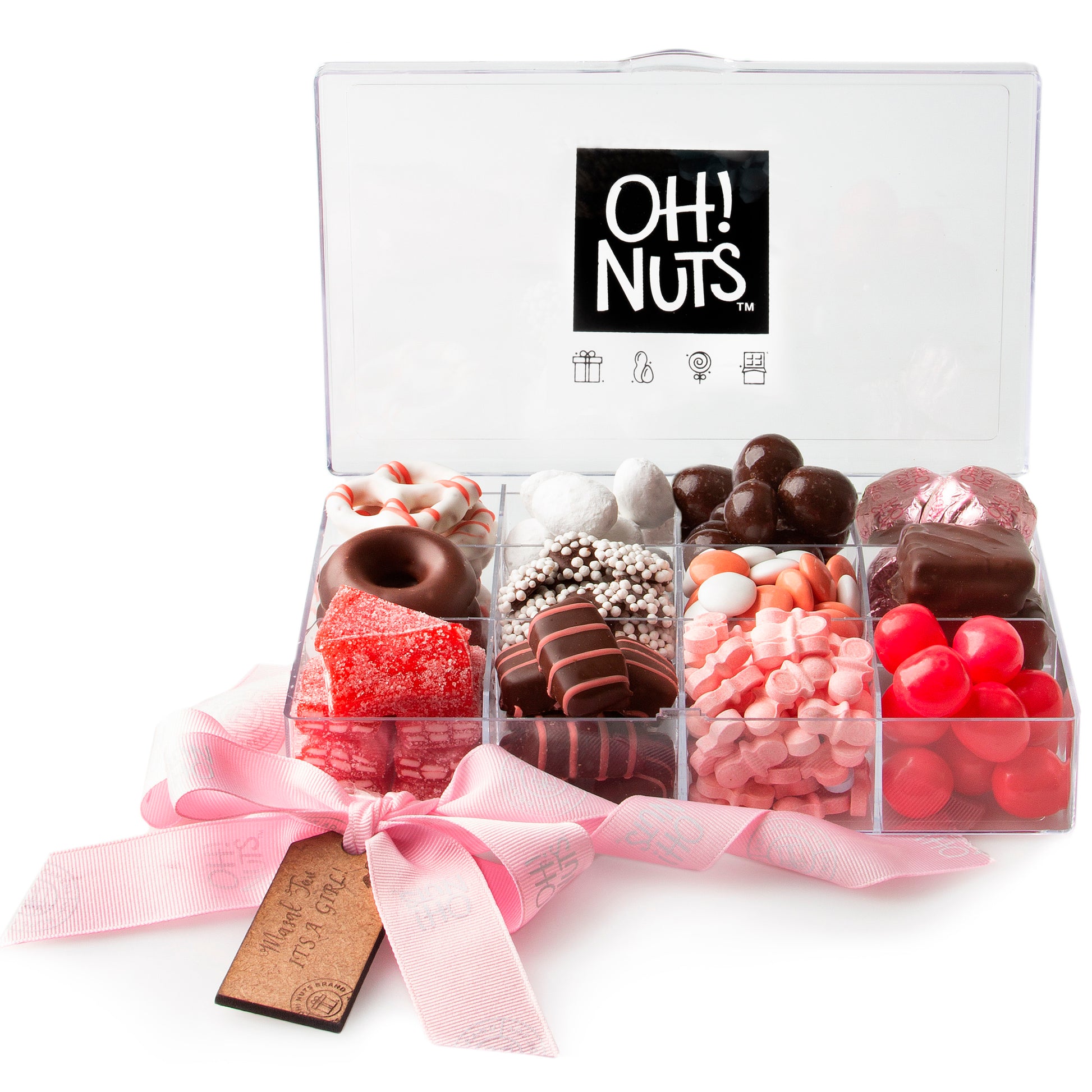 This Baby Girl Gift Basket is a great gift for those who wish to participate in the joy of their beloved one's new baby girl. Filled with chocolate pretzels crunch, assortment of chocolate truffles and candies.