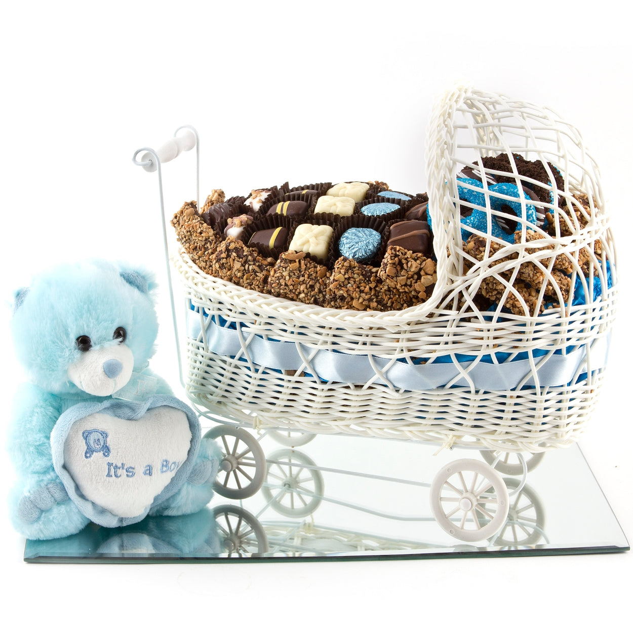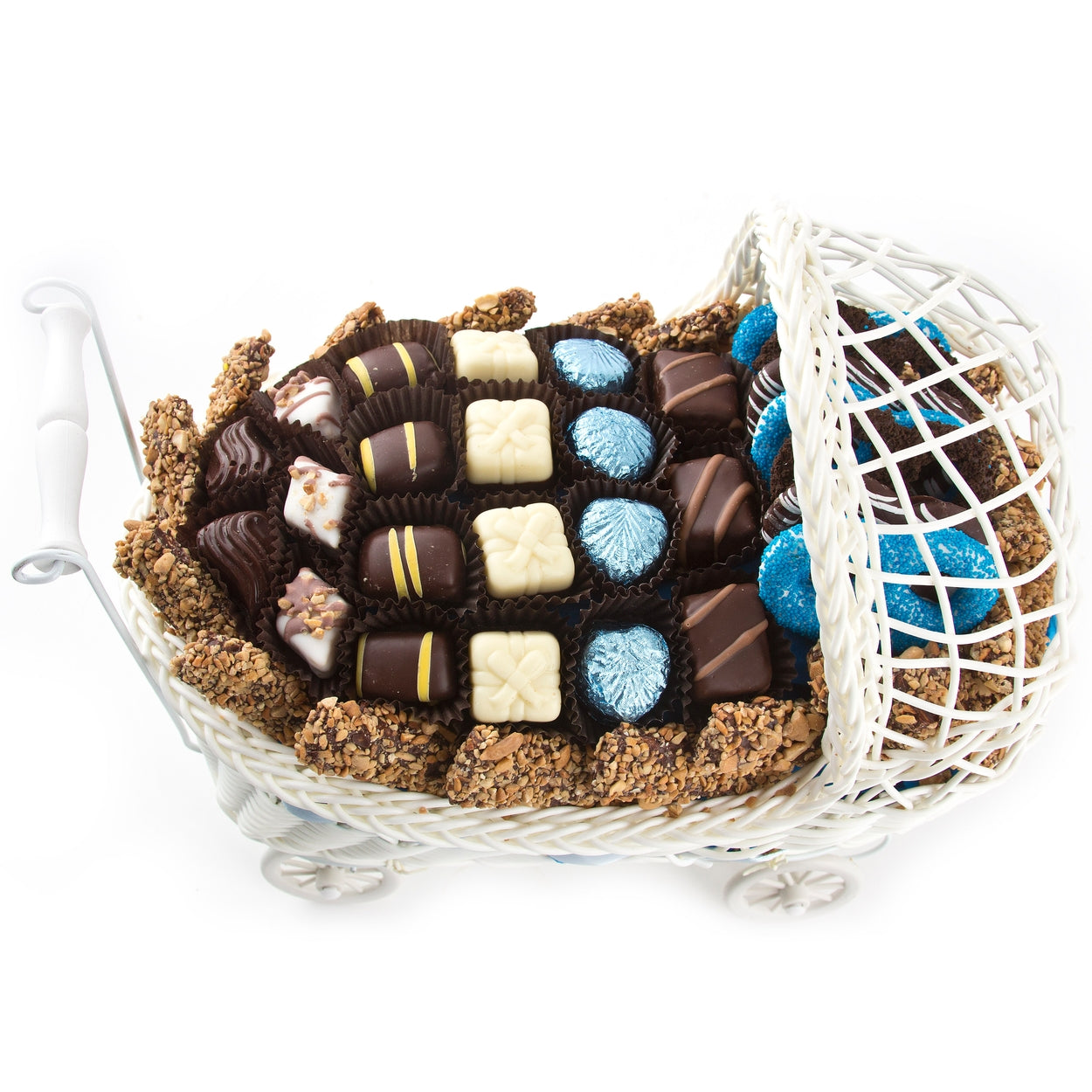 I have sent this basket twice inthe recent past. I live in Brooklyn and it was delivered to Monsey. I am actually seeing it for the first time now (on the computer). I can only tell you that the recpients oved it. So thank you.