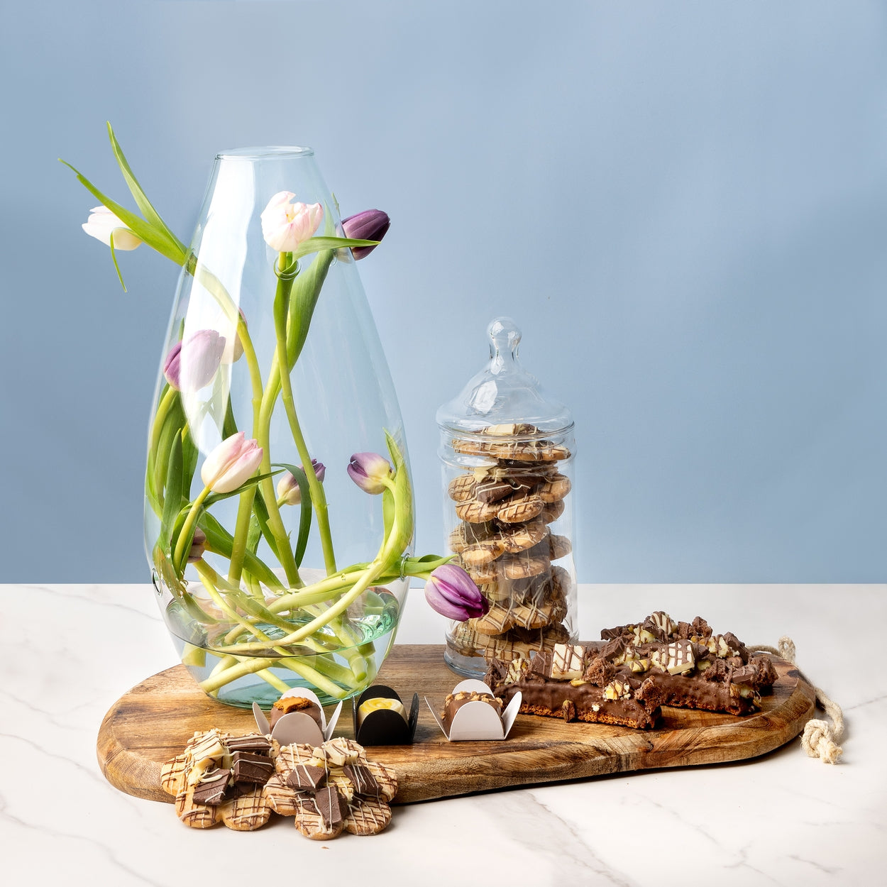 Want to send a tray that will be amply filled with the best of treats so that you can really make an impact when you need to contribute to a Simcha? Send this tray of gourmet and premium dairy milk treats. This gift will look perfect on the sweet table or dessert display.