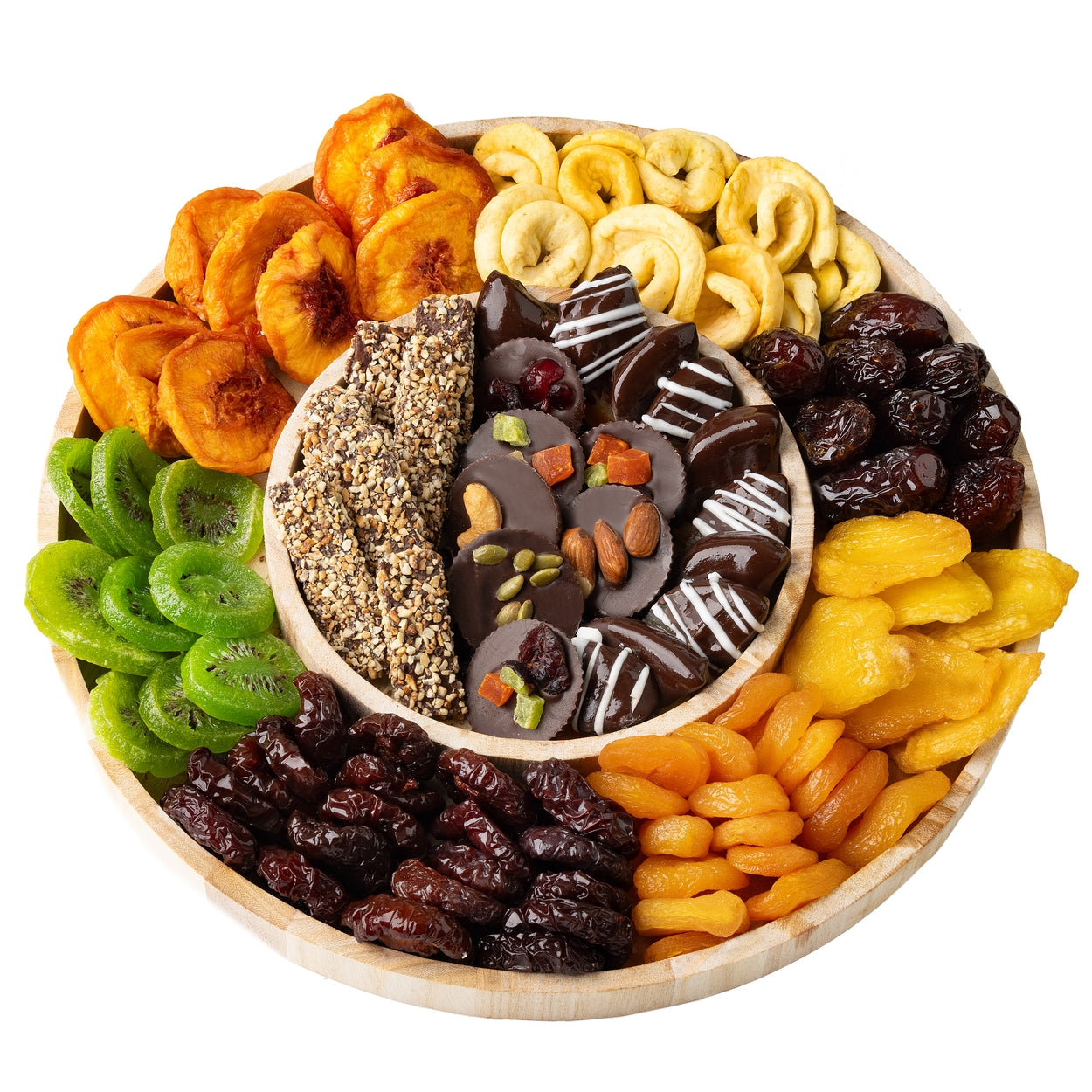Tu Bishvat Dried Fruit Wooden Round Line Up Gift Basket
