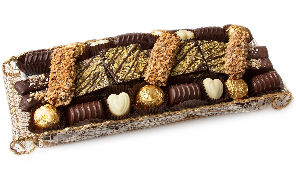 Unique, elegant chocolate gift tray that makes an affordable gift for the chocoholic.